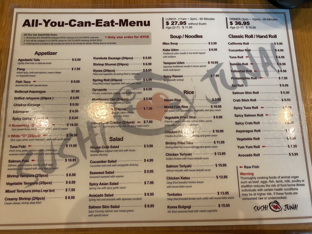 Sushi Junai 2, located in Austin, TX, is a sushi bar that offers a wide range of options for customers. From appetizers like Fish Taco and Chicken Karaage to soups like Miso Soup and salads like Seaweed Salad, the menu provides something for everyone. Customers rave about the all-you-can-eat sushi deal and the quality of the food, highlighting the friendly service and quick delivery of orders. The reviews praise the freshness and variety of the sushi options, with some customers noting the value for the price. Overall, Sushi Junai 2 seems to be a popular spot for sushi lovers looking for a satisfying and affordable dining experience.